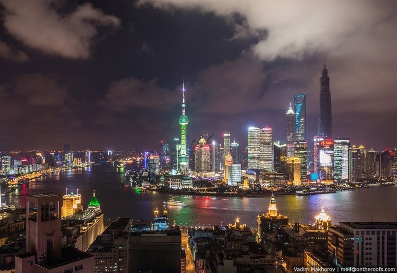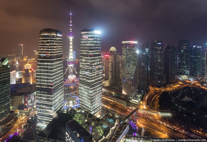 Ночной Шанхай с высоты