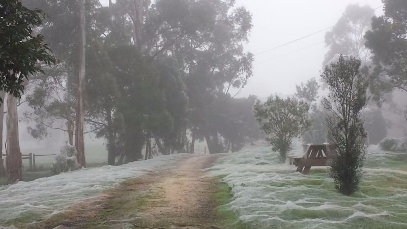 Австралия зимой вместо снега покрывается паутиной5 фото