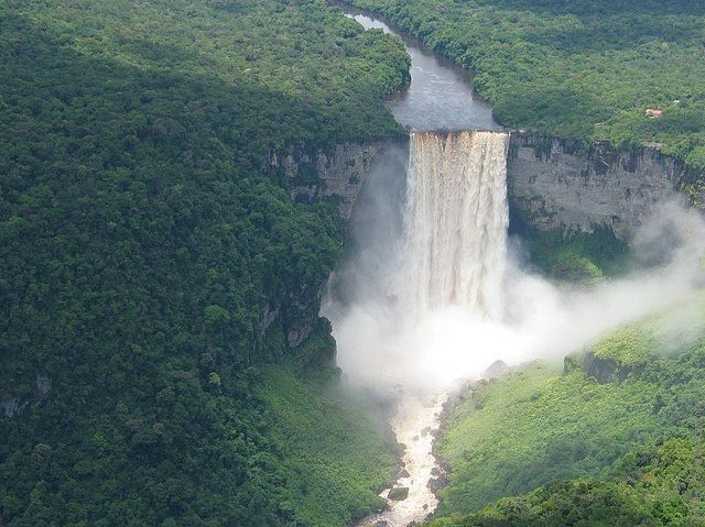 Он расположен в Национальном Парке Кайетур, области, которая также относится к Венесуэле. Высота водопада - 226 метров, если измерять от его падения с утеса песчаника к первому разрыву. Затем водопад течет по ряду крутых каскадов, которые, если включить в размеры, достигают полного размера - 251 метр. Изолированное местоположение водопадов означает, что живая природа здесь и по сей день процветает, но это также требует определенных усилий для того что бы попасть в парк. Маленькие самолеты совершают сюда регулярные рейсы из Джорджтауна, но мест на них обычно не хватает. Другой путь к водопадам - двухдневная "пешая прогулка".