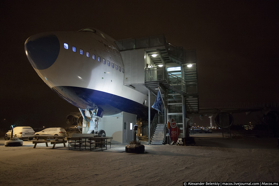 Якось так вийшло, що цей готель-літак мало не єдиний в світі. Є готелі, зроблені з невеликих літаків, але не з таких громадин. І знаєте, що я подумав? Адже у нас повно списаних тушок, яків по аеродромах припадає пилом ... хороший був би бізнес. Та хоч у Внуково літак-пам'ятник в готель переробити. Було б кому цим займатися.
