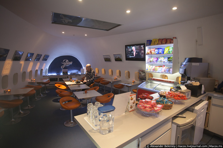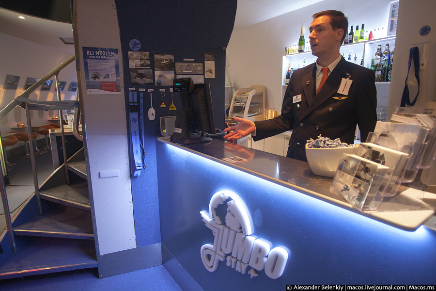 3. Стійка адміністратора. Портьє в костюмі, схожому на уніформу пілота, розповів про те, що готелі 28 номерів, де можуть розміститися до 76 осіб. & Quot; Джамбо & quot; в свої льотні роки вміщував до 350, але спати на ліжках всяко зручніше, ніж в кріслі економ-класу. Зверніть увагу на листівки і сувеніри: люди із задоволенням купують щось на згадку про свого незвичайному нічлігу.