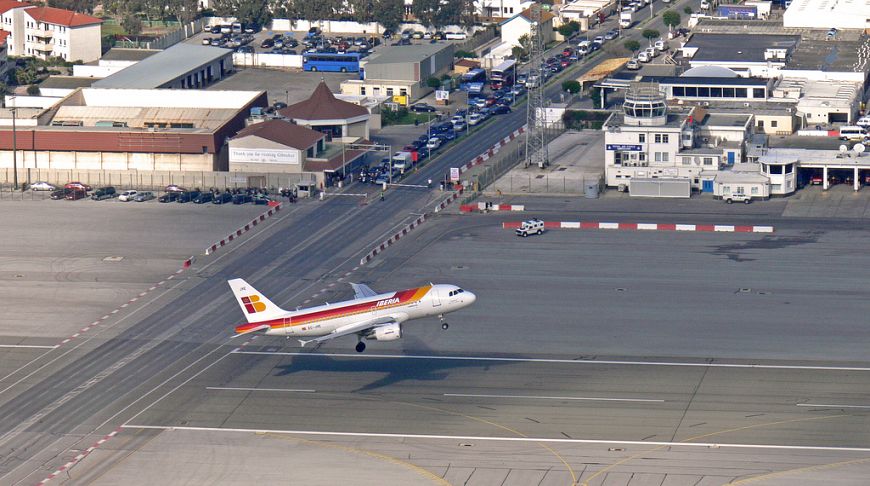 наступний пункт нашого невеликого подорожі — Скала, так по-народному називають Гібралтар. Власник аеропорту — Міністерство оборони Великобританії — використовує його для військових потреб. У перервах же здійснюються цивільні рейси — до Великобританії і Іспанії. Але головна його особливість — це перехрестя з автострадою. Тому авіадиспетчери тут ще й регулювальники вуличного руху, які то відкривають, то закривають шлагбауми. При цьому запальні іспанці хоч і лаються, але стоять і чекають. Нікому не хочеться опинитися під шасі боїнгу.