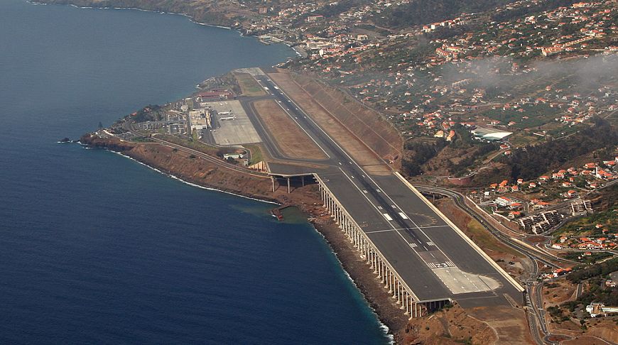 Від Скелі недалеко до португальського острова Мадейра, який славиться не тільки знаменитим напоєм, прекрасними пляжами, але і своїм незвичайним аеропортом. До речі, пілоти до 2000 року повільно погоджувалися сюди літати. Адже посадка вимагає від них виконання особливих маневрів. Спочатку літак необхідно направити на гори, а практично в самий останній момент різко змінити напрямок польоту і зайти на злітно-посадкову смугу. Просто американські гірки. Але 2000 року ВПП була добудована. І тепер значна частина її представляє собою естакаду, розташовану на 180 залізобетонних стовпах діаметром 3 метри кожен. Висота окремих опор досягає 50 метрів над рівнем моря.
