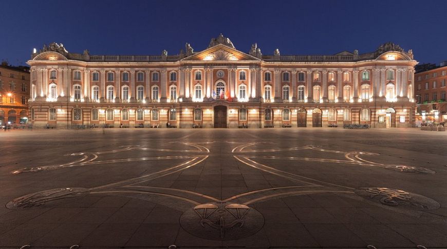 Будинок міської адміністрації, театру та симфонічного оркестру — Тулузький Капітолій — шикарна будівля, чий вигляд сформувався в XVIII столітті. Воно побудоване з символічного для Тулузи цегляного кольору, а недавня реконструкція зробила його в усіх відношеннях досяжним для цікавих перехожих.