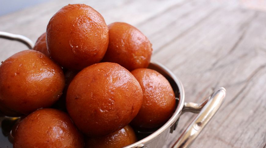 Гулабджамун — один з найпопулярніших індійських десертів. Це пончики зі згущеного або знежиреного молока, залиті рожевим цукровим сиропом.
