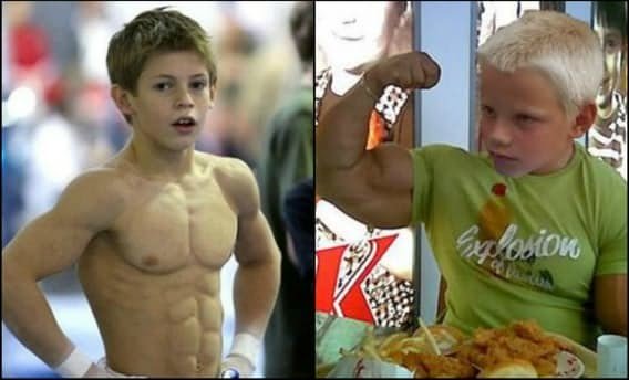 Джуліано на цьому фото зліва, Клаудіа (теж хлопчик) — праворуч. Це все, що вам потрібно знати про двох дітей з Румунії: щоб здивуватися їх здібностям, цілком достатньо цих фото. Ну, ще, мабуть, трохи фактів: у 2009 році 5-річний тоді Джуліано потрапив в Книгу рекордів Гіннеса за & laquo; найшвидший прохід 10 метрів на руках з затиснутим між ногами важким кулею & raquo ;. Його брат Клаудіа народився в 2006-му і став тренуватися в 18 місяців. Кілька років тому батько хлопчиків, Луліан Стро, разом з хлопчиками переїхав до Флоренції, сподіваючись зачепитися там в якомусь шоу — але з цього нічого не вийшло. Родині довелося повернутися в Румунію — і знову тренуватися до знемоги: зараз Луліан сподівається, що вони з синами зможуть знайти собі місце в якомусь шоу в Британії. І тоді, можливо, хлопці повторять успіх Річард Сандрак, влаштувавшись завдяки своїм талантам в який-небудь благополучної західної країні.