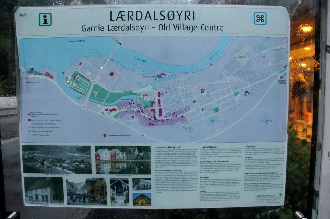 У селі Лаєрдал проживає 1150 осіб. Серед її будинків більше 160 будівель - історичні архітектурні пам'ятники 18 - 19-го ст., Деякі з яких знаходяться в списку ЮНЕСКО. Поруч із селом також знаходиться дерев'яна церква 1180 року побудови, що збереглася в цій категорії церков в Норвегії краще за всіх. Має свій госпіталь, кілька музеїв, автозаправку і невеликий порт.