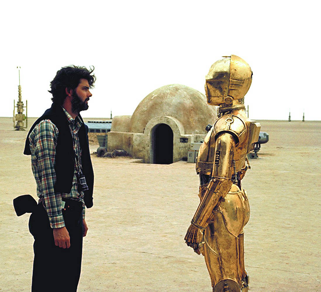 Джордж Лукас і Ентоні Деніелс на с'мочной майданчику фільму "Зоряні війни: Нова надія"