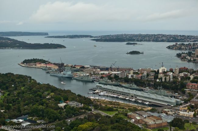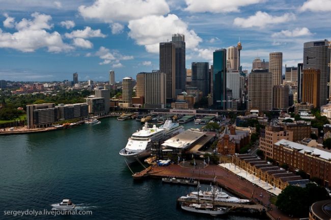 А ось вид на затоку Сідней-Коув з висоти Сіднейської опери.