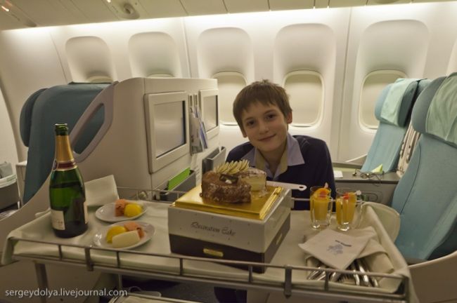 Перш ніж розпочати розповідь про нашу місячне подорож в Австралію, я хочу висловити слова вдячності та захоплення Корейським авіалініям. Вони є частиною альяансу з Аерофлотом, і тому ми всією родиною змогли безкоштовно полетети в Австралію та назад завдяки миль, накопичених мною протягом року у Аерофлоту. Усе почалося з того, що у мого старшого сина день народження випав на 19 грудня. Весь цей день – від 11 ранку до 9 вечора – ми провели в літаку, перельітаючи з Сеула до Сіднея. Корейські авіалінії підготували для моїх дітей спеціальний торт та шампанське для батьків на святкування. Діти були в захваті від такого свята: