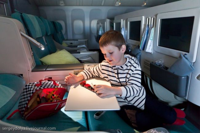 Напередодні Нового року рейси з Сеула були напівпорожні, тому ми були самі в салоні літака т та почувалися як вдома: