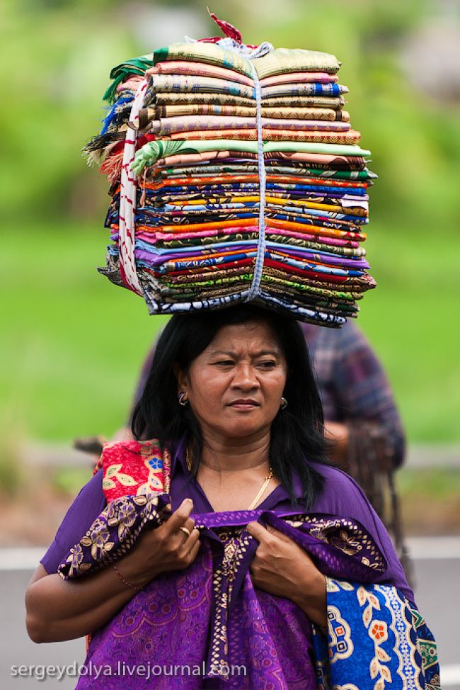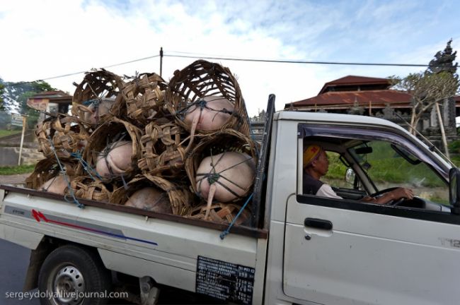 Дороги на Балі, мягко кажучи, не дуже хороші; крім того, вантажівки там досить маликі, тому вантили часто вивішуються за край автомобілів: