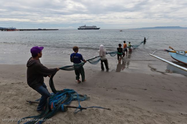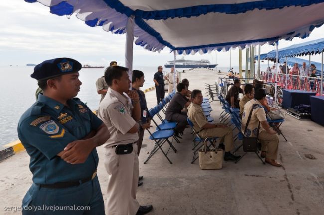 Половина екіпажу нашого судна складалась з людей з Філіппін, а інша половина — з Індонезії; багато з них були родом з Балі. У багатьох з них контракт з компанією Holland-America Line закінчився, тому вонь припливли сюди, щоб висадитися, а інші розпочинали 9-місячний період служби на судні: