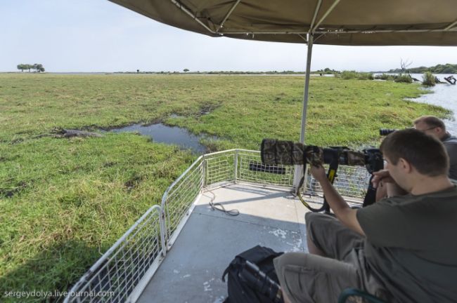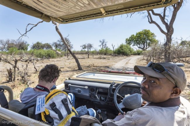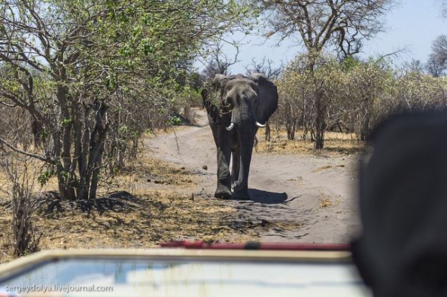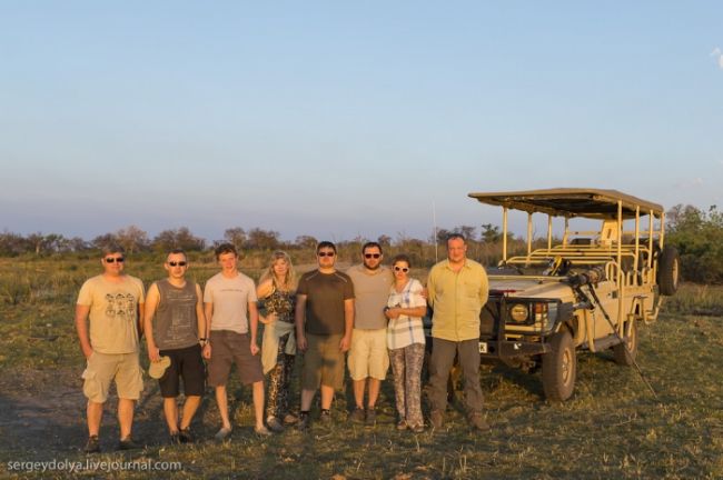 В Ботсвані нас поселили в намети, розбиті на узліссі. Ніякої огорожі навколо них не було, і всю ніч безперервно навколо нас хтось хрюкав, гарчав, верещав, тупотів або шарудів. Крім того, гіди сказали що залишати намети вночі небезпечно: ті, кому ну дуже треба було вийти, сурмили в свисток, закликаючи супроводжуючого. За програмою в Ботсвані у нас було заплановано три табори, між якими ми повинні були переміщатися на літаках. Чесно кажучи, з восьми чоловік шестеро вирішили покинути перший табір, не чекаючи знайомства з іншими двома: