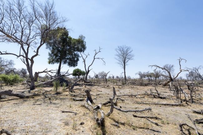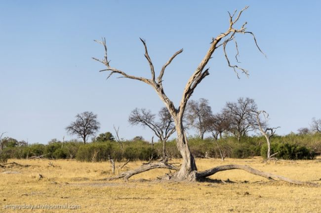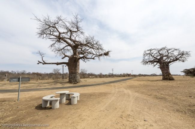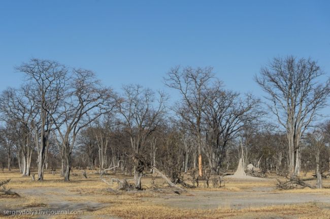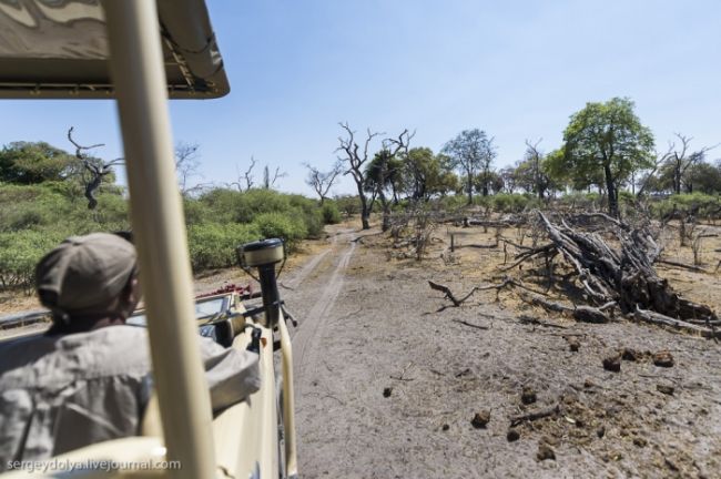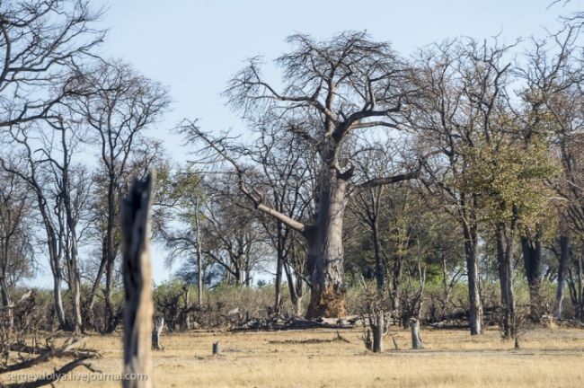 Після водного сафарі ми поїхали вглиб Ботсвани. Їхали шестеро годині на автомобілі від кордону Замбії. По дорозі були невеликі стоянки, де можна було зупинитися і сходити & quot; в кущі & quot ;. Або - по-африканськи, - & quot; в баобаби & quot;