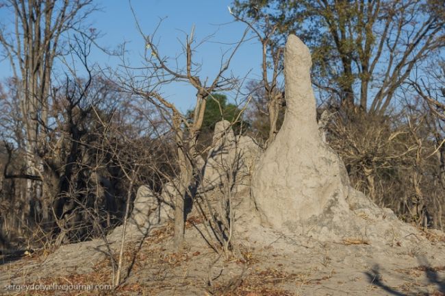 Самих термітів ми не бачили - вони живуть в глибині свого житла. Гід розповів, що часто можна побачити на термітниках левів і різних хижаків: вони залазять на тверді виступи цих пагорбів і вишукують своїх жертв з високою точки