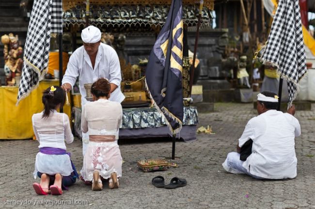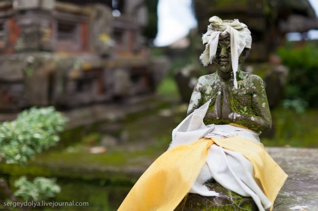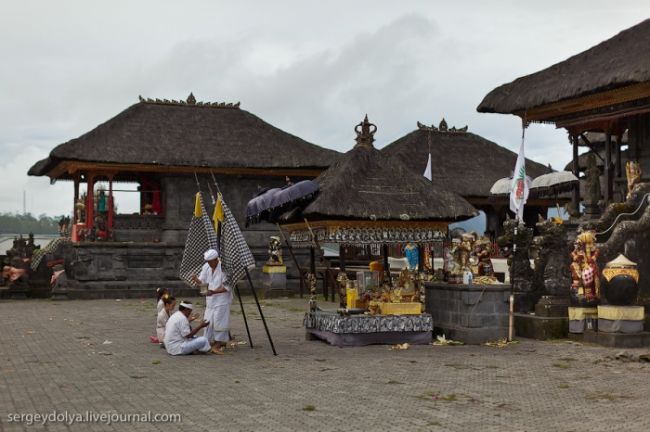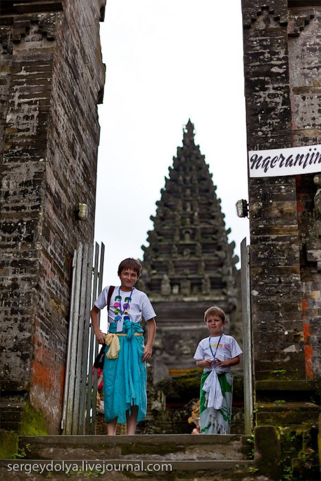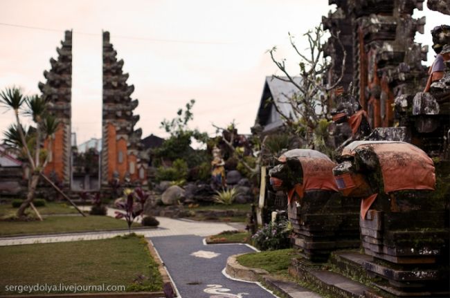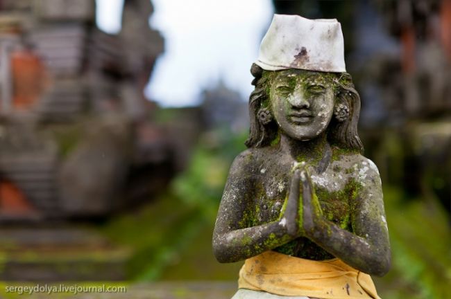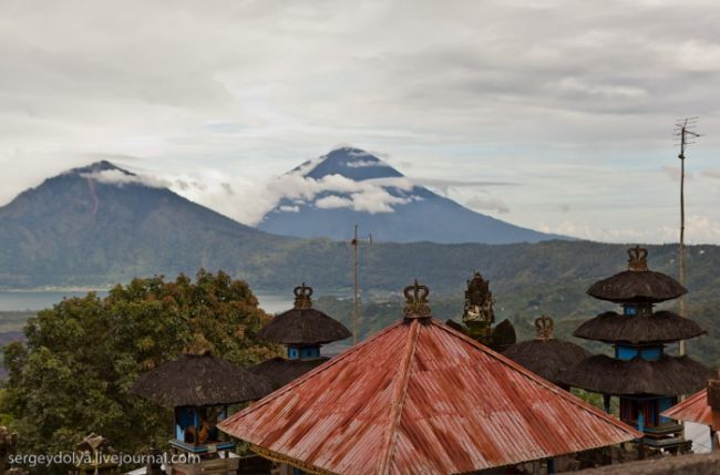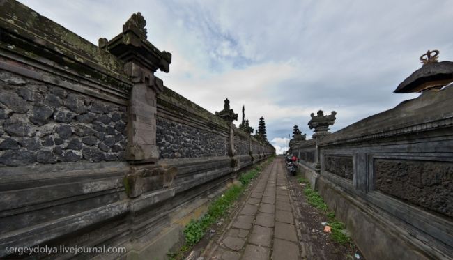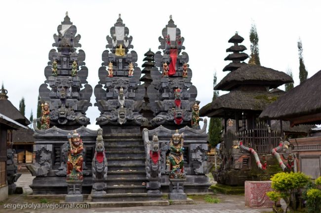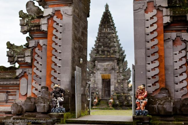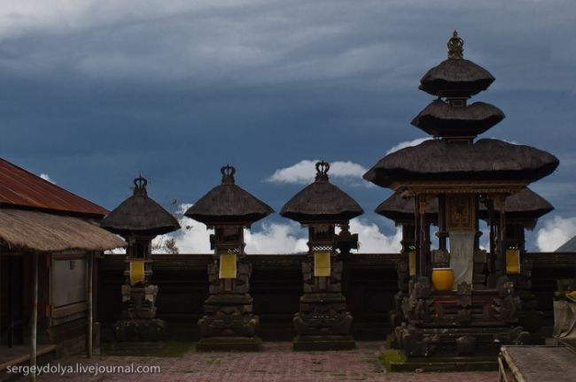 Він побудований на гребені кальдери вулкана Гунунг-Батура в 1926 році і присвячений богині річок і озер Деві батареї Улун Дану. У храмі дуже багато скульптур стражників, яких я фотографував своїм новим Фіша. Грізні воїни виходили досить комічно ...