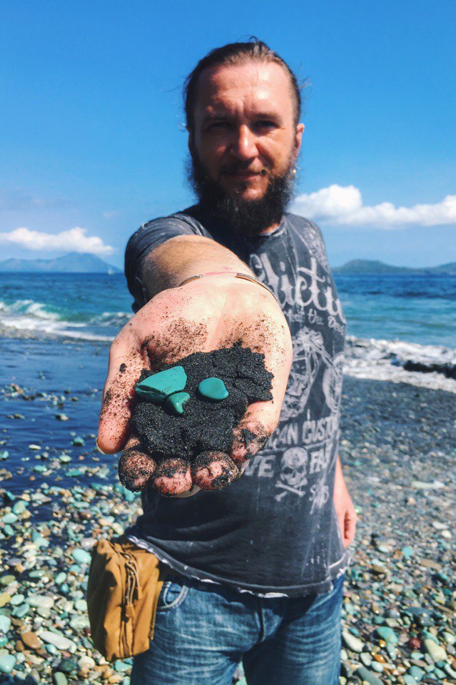 На острові Флорес є містечко Енде. Недалеко від цього містечка є пляж Нанга Панда. Пісок там чорний - але цим нас вже не здивувати. Але саме на цьому пляжі і більше ніде в світі по чорному піску розсипані камені незвичайного кольору. Вони блакитні. Можете писати про колір що завгодно, але на моє, чоловічий шкалою кольорів - це блакитний колір. Пляжик дуже приємний. Рекомендую для посидіти, полежати, почитати, потупити і поплавати. Їду і воду треба брати з собою. Цивілізації там немає. P>