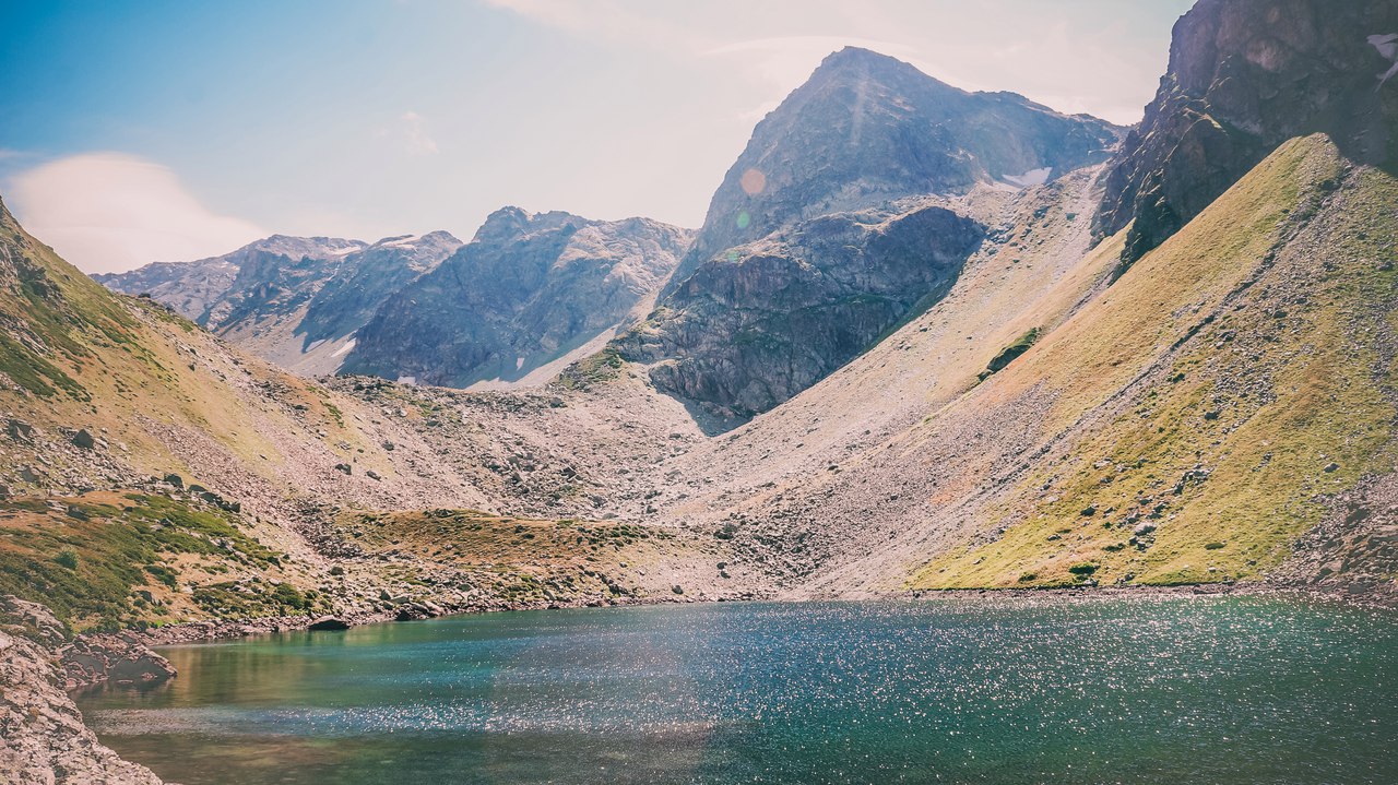 Озеро семицвітні на Кавказі. Його довжина понад 200 м, висота над рівнем моря 2420 м. З півдня в озеро опускається потужний сніжник, що відірвалися від нього шматки плавають у вигляді невеликих айсбергів (до серпня & ndash; пізніше сніжник сильно тане). При легких брижів поверхню води розцвічується райдужним спектром, передаючи гру сонячного світла і відображення навколишніх гір і хмар. За це воно і отримало назву & laquo; семицвітні & raquo ;. У першій половині літа берега прикрашені квітучим рододендроном.