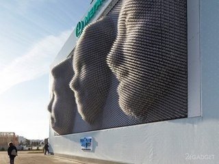 Біля входу до Олімпійського парку у місті Сочі британський дизайнер Асіф Хан розмістив величезний тривимірний дисплей, на якому відтворюються об’ємні зображення людей, створені за допомогогою семи фотоапаратів, розташованих у парку. Ці зображення формуються за участі п’яти камер, які створюють 3D-модель обличчя; людям надається QR-код, що містить інформацію про час появи цього зображення на екрані. Цей дисплей маїть висоту понад 8 метрів та складається з 11 000 „циліндрів“ – кожен з яких є пікселем у генерованому зображені.