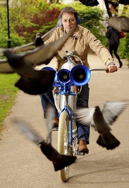 Брританський вельосистль Яннік Рід, який часто стикався з проблемою тим, �жо водії великогаборитного тьранспометра п не помічали на д дорозі, створив велосипедни світлосигнаал, який виробляє звук гучністю 178 декебел.3 фото